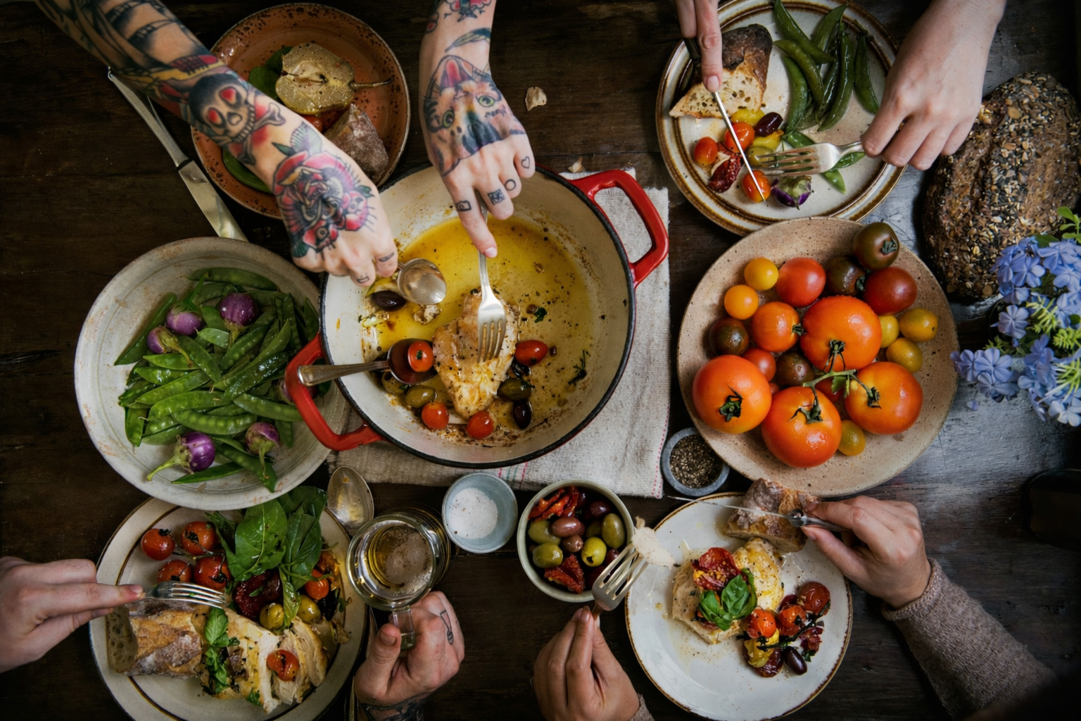 Shared meals made from what’s in season, gathered around the shared table